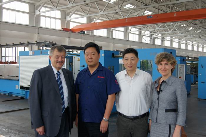 注:尼霍夫機(jī)械制造有限公司創(chuàng)始于1875年,作為歷史悠久的電纜設(shè)備制造廠商,在拉線、電鍍和束線等領(lǐng)域均處于世界領(lǐng)先地位。NIEHOFF與江潤(rùn)銅業(yè)之間的合作源遠(yuǎn)流長(zhǎng),始于九十年代初,國(guó)內(nèi)首家引進(jìn)了M85高速連續(xù)退火大拉設(shè)備,因?yàn)樗募夹g(shù)、品質(zhì)、服務(wù)以及德國(guó)工業(yè)的嚴(yán)謹(jǐn)作風(fēng),促使我們從2000年起分批引進(jìn)了120多臺(tái)套系列拉線、電鍍錫、電鍍銀、束線等先進(jìn)裝備。二十年的歷程,二十年的風(fēng)雨,我們攜手同行、共同成長(zhǎng)。新型號(hào)設(shè)備的試用、使用意見(jiàn)反饋、改進(jìn)完善,我們之間一直在進(jìn)行著技術(shù)交流和互動(dòng)。2004年,我們引進(jìn)了國(guó)內(nèi)首條WPT4000鍍錫生產(chǎn)線,經(jīng)雙方工程師的通力合作,使92年產(chǎn)M85和新鍍錫機(jī)聯(lián)動(dòng)生產(chǎn)成功,創(chuàng)造了亞洲地區(qū)首條拉線、電鍍聯(lián)動(dòng)生產(chǎn)線。