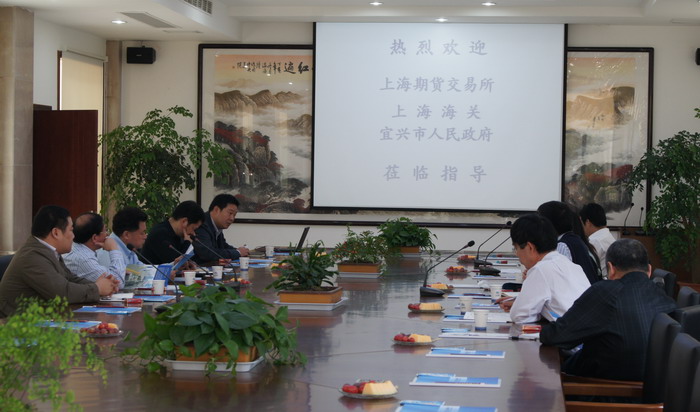 10月22日,上海期貨交易所丁文輝、宜興市人民政府周市長等一行10人訪問江潤銅業(yè),公司總經理駱偉棟熱情接待。 駱總對上海期交所、市領導的再次到來表示熱烈歡迎,詳細介紹了江潤銅業(yè)本年度生產經營的基本狀況,對未來發(fā)展的展望。期交所丁總監(jiān)對江潤銅業(yè)在多年合作中提供的優(yōu)質服務表示感謝。 隨后,來訪客人深入生產車間,參觀SCR-7000銅連鑄連軋車間、復合銅線車間、銅絞線車間。江潤銅業(yè)先進的裝備,整潔的車間,優(yōu)美的廠區(qū)環(huán)境給參觀團一行留下了深刻印象,一致認為符合上海期貨所注冊試驗工廠的標準。